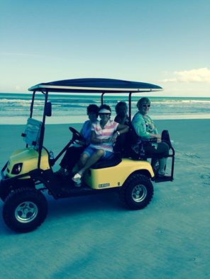ladies in a golf cart